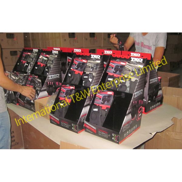 Black Custom Cardboard Countertop Displays Fulfillment With Gloves Before Shipping Images |